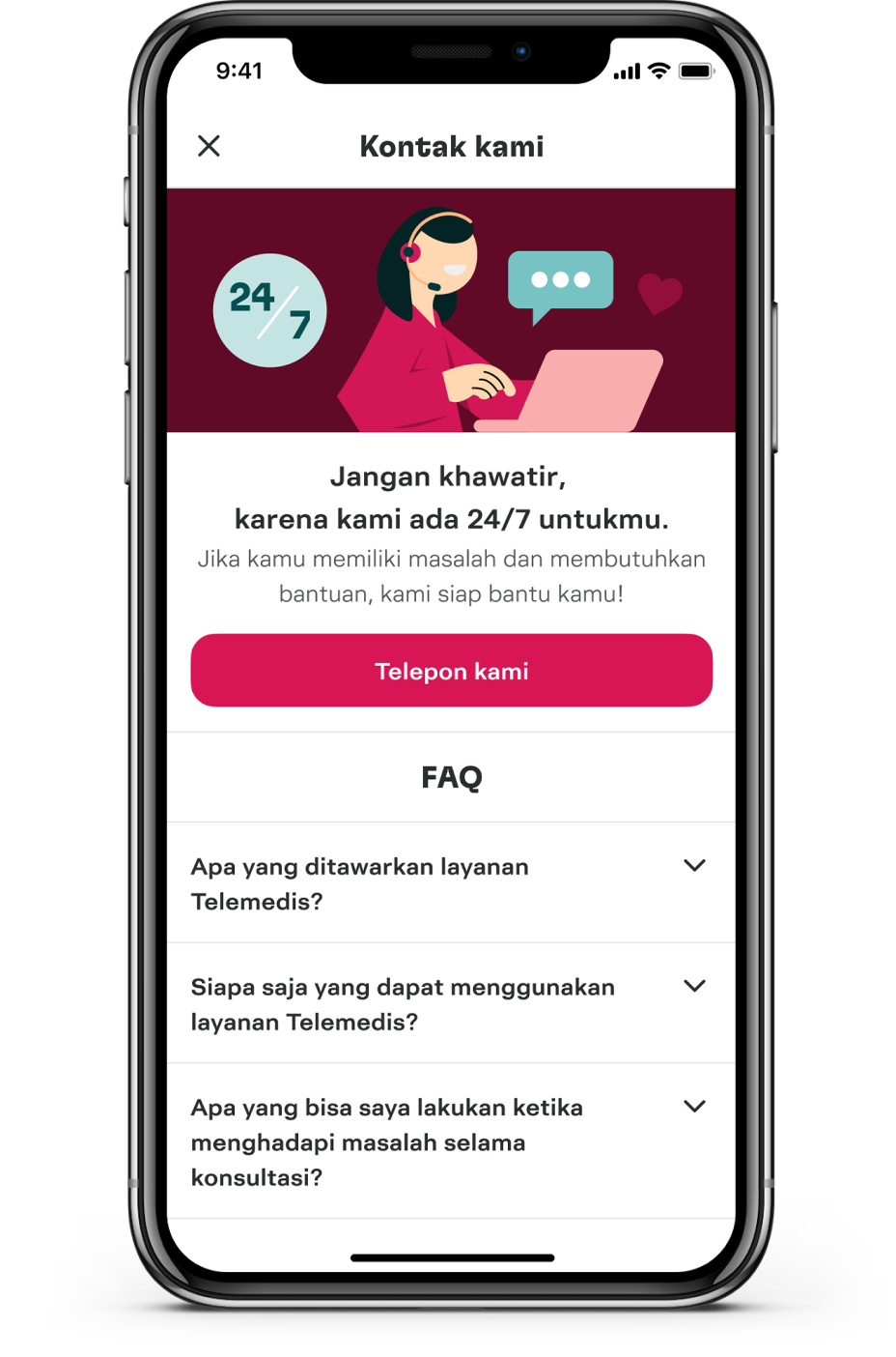 Customer Service kami siap membantumu sepanjang hari, sepanjang malam, 24/7